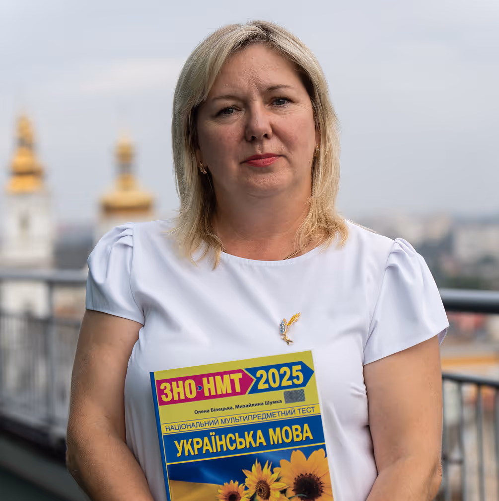 Учителька української мови з 23-річним досвідом. Підготувала понад 1100 учнів, з яких п'ятеро здобули максимальні 200 балів на НМТ. Викладає за власною методикою, яка робить навчання доступним та дружнім.